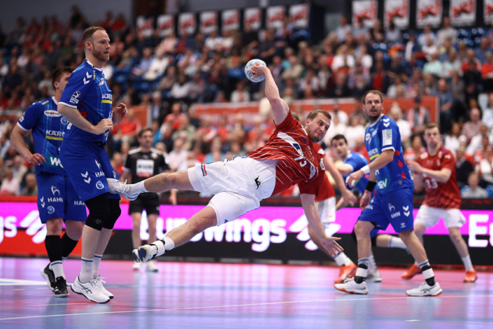 Auf der Gegenseite blieb Robin Haug, der unter der Woche seinen Vertrag bis 2030 verlängert hat, ein sicherer Rückhalt und verhinderte mit einer weiteren starken Parade den Anschluss der Gäste. Die Hamburger nutzten diese Phase konsequent aus. Casper Mortensen traf mit einem präzisen Wurf aus der eigenen Hälfte ins leere Tor der Stuttgarter – 16:10 (24.).